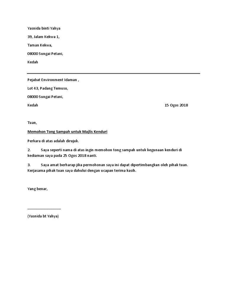 Memberikan penyadaran dan contoh kepada masyarakat akan pentingnya menjaga lingkungan. Sampah roda surat rasmi permohonan tong kit contoh surat rasmi. Apalagi jika berurusan dengan pembuatan acara kegiatan bakti sosial hingga urusan kedinasan.